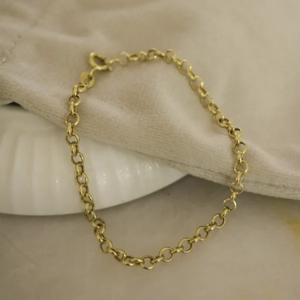O início de uma história, o primeiro elo de ouro. A Pulseira Primeiro Vínculo é a joia mais delicada e significativa para celebrar a chegada de uma criança. Seus elos suaves e redondos, em ouro 18K, simbolizam a pureza da infância e o vínculo inquebrável da família.